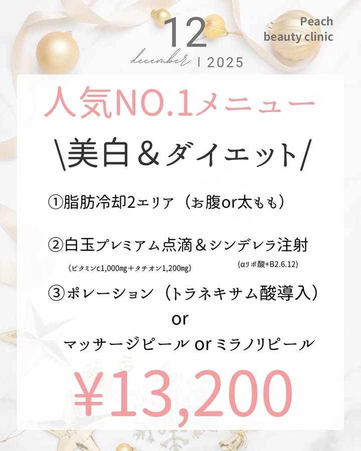 #小倉美容 #小倉駅近く #美白ケア #脂肪冷却 #ダイエットメニュー #白玉点滴 #シンデレラ注射 #ポレーション #マッサージピール #ミラノリピール #美容好きな人と繋がりたい #肌改善 #美肌ケア #peach美容クリニック